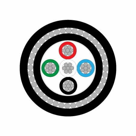 4 Core + Earth (5G), 25.0mm², TCW, XLPE 90°C, SWA, 0.6/1KV, Circular TPS Cable (MASCPX5G25.0SWA)
